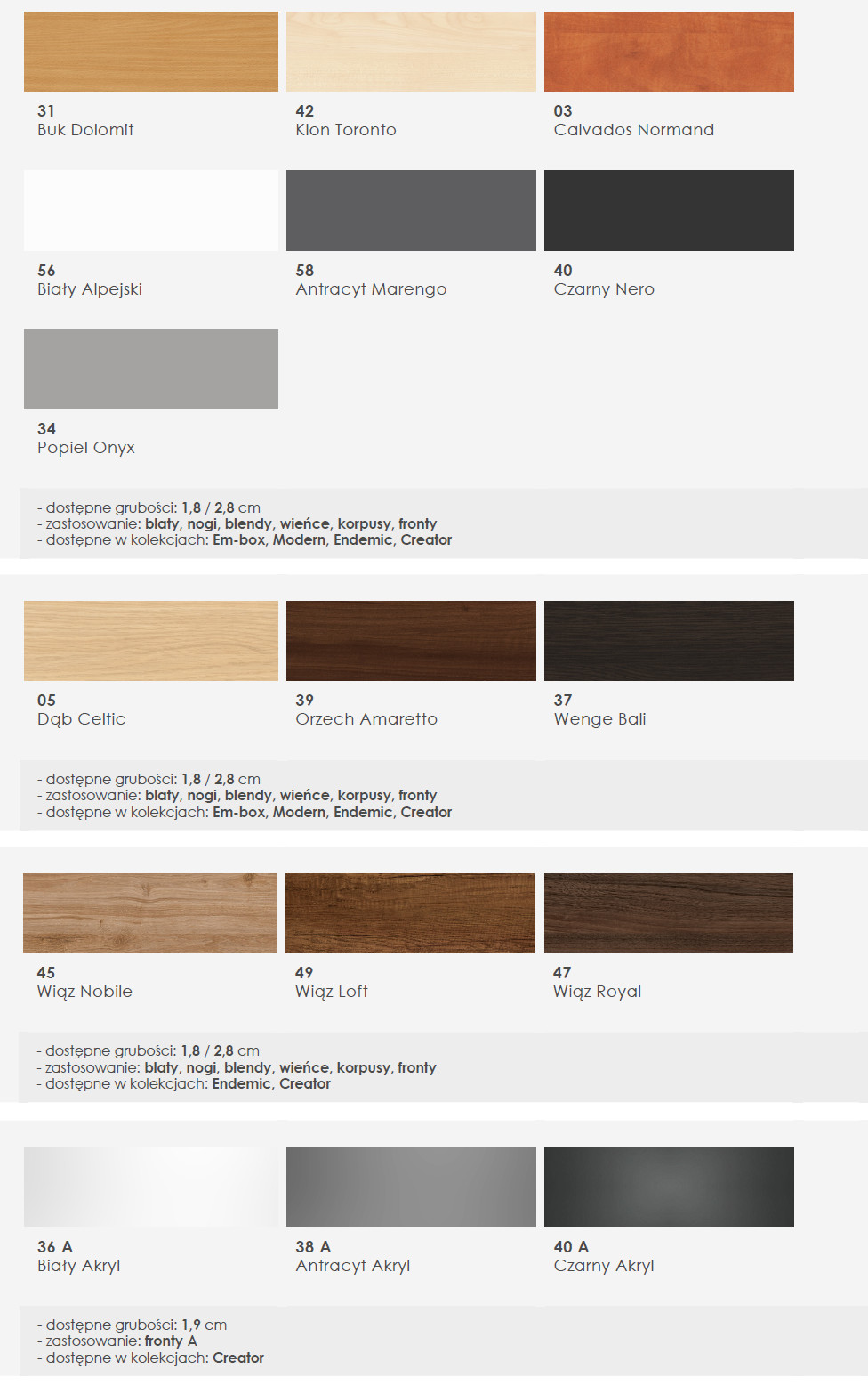 DOSTĘPNE KOLORYSTYKI BIUREK GABINETOWYCH