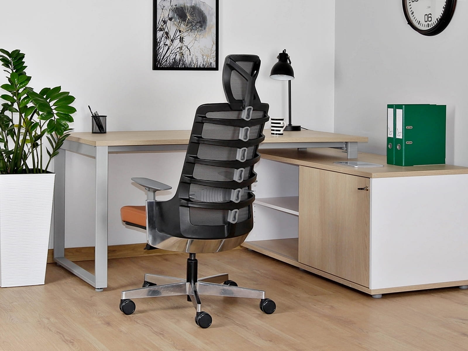 - Krzesło biurowe z oparciem siatkowym i zagłowkiem ERGONIC