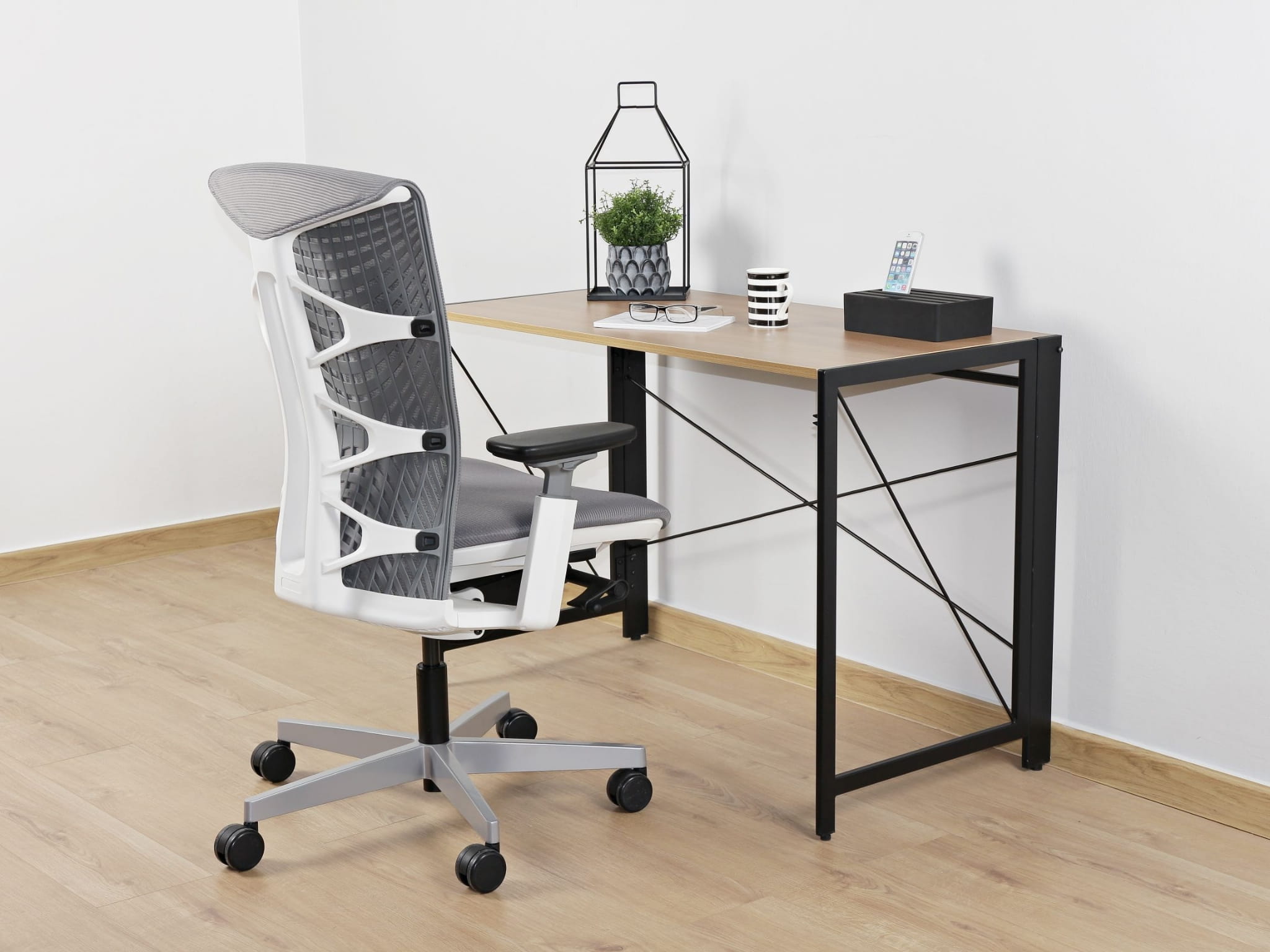 - Krzesło biurowe z oparciem siatkowym i zagłowkiem ERGONIC