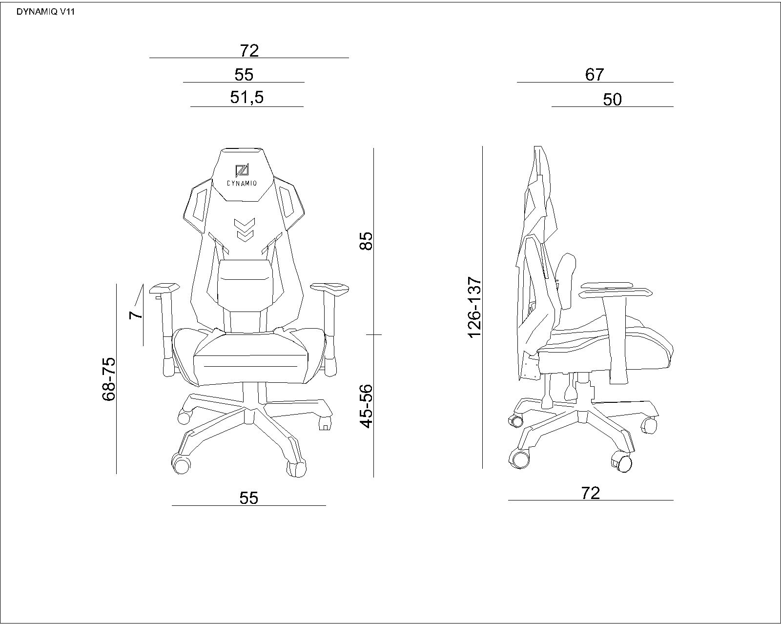 Producent fotela gamingowego Dynamiq V11 zadbał o to, by konstrukcja miała płynną regulację wszelkich elementów podpierających: oparcia, siedziska, podłokietników. Podczas siedzenia w fotelu dla gracza można indywidualnie regulować oparcie także w odcinku lędźwiowym kręgosłupa, co ma ogromne znaczenie dla osób, które skarzą się na bóle. Tym samym oparcie fotela perfekcyjnie dopasowuje się do potrzeb użytkownika. Siedzisko i oparcie tapicerowane jest skórą ekologiczną, która jest komfortowa, trwała i łatwa w czyszczeniu. Podłokietniki wyposażono w miękkie nakładki, a podstawa fotela została wykonana z mocnego tworzywa. Cały fotel dla gracza znosi wysokie obciążenia, nawet do 130 kg.