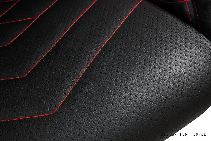 - Siedzisko oraz oparcie tapicerowane eko-skórą z dodatkami tkaniny
