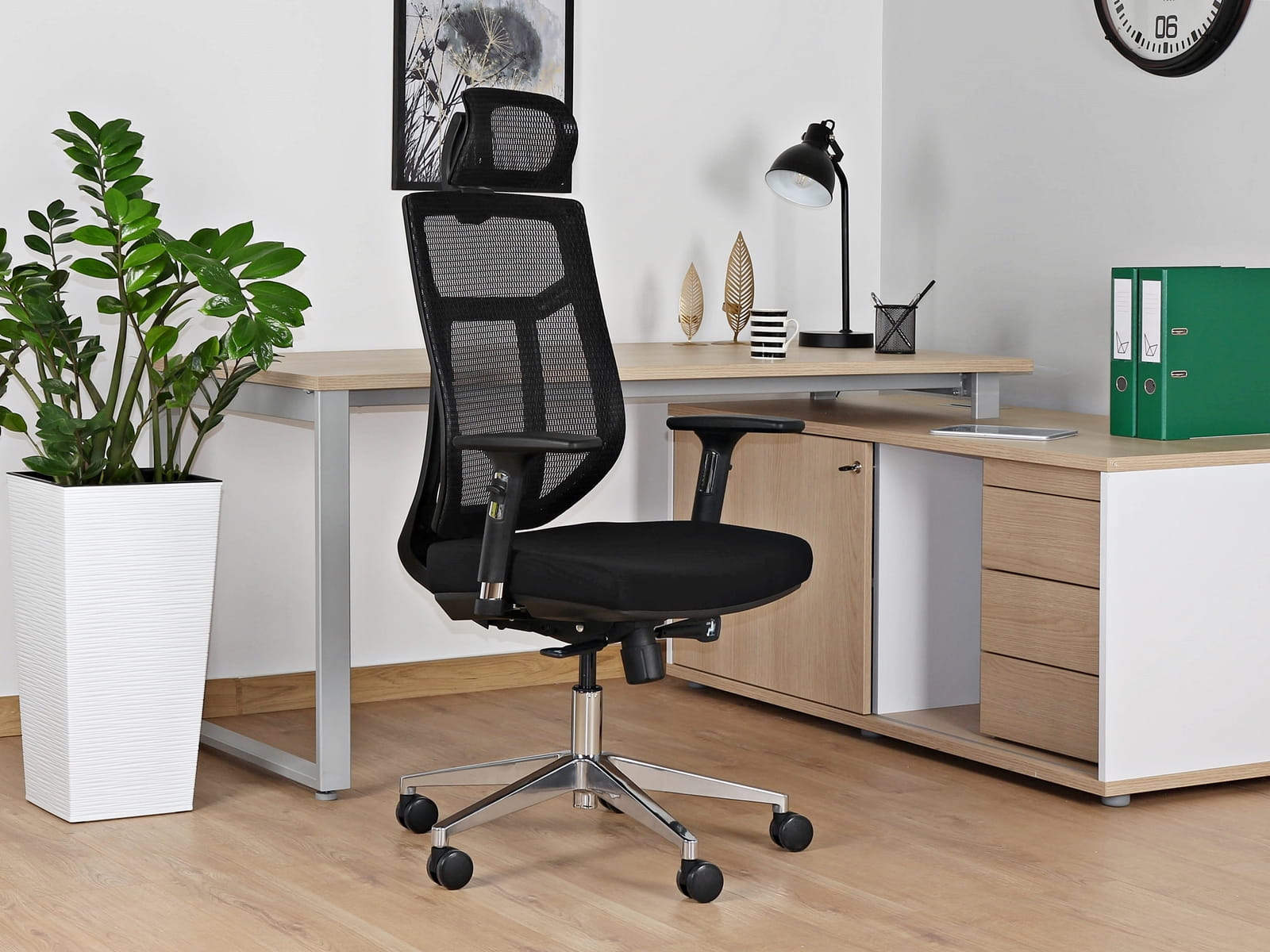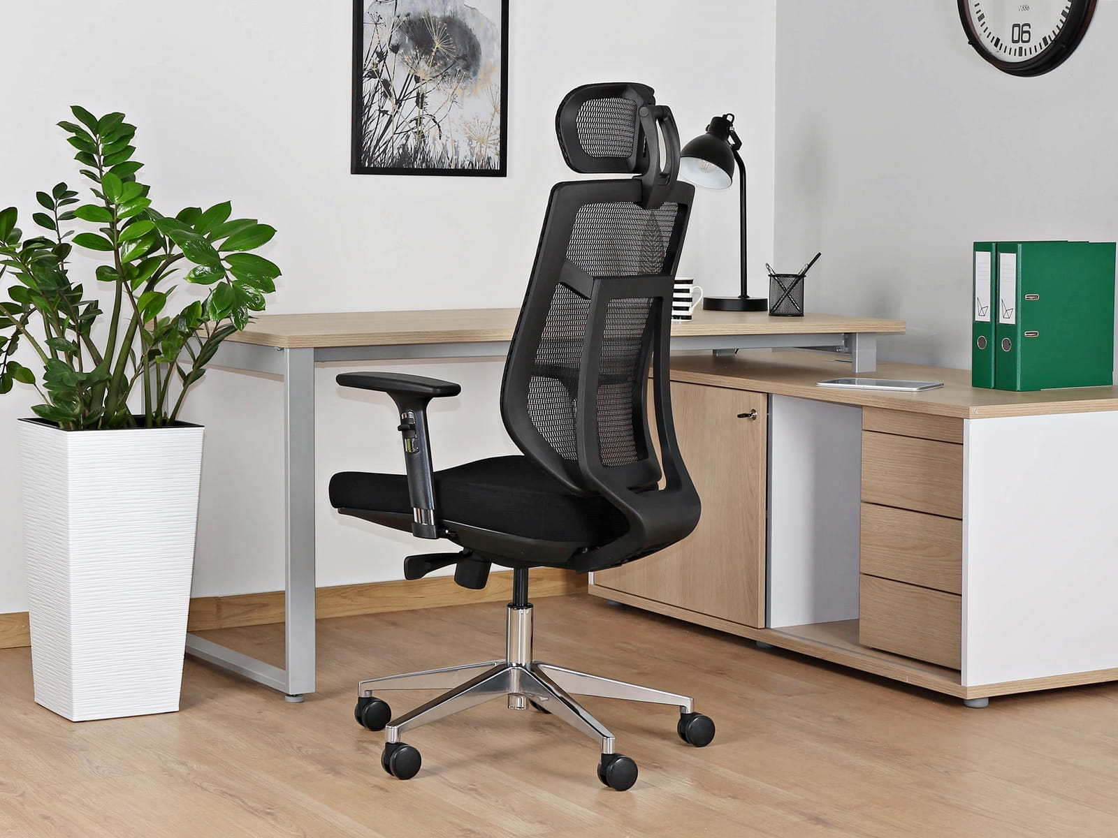- Krzesło biurowe z oparciem siatkowym i zagłowkiem ERGONIC