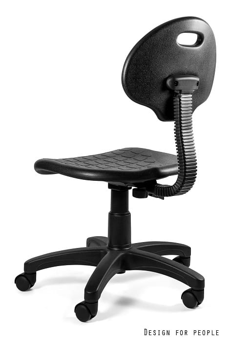 - Siedzisko i oparcie wykonane z czarnego poliuretanu