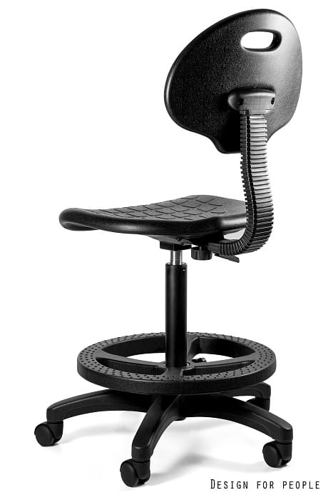 - Siedzisko i oparcie wykonane z czarnego poliuretanu