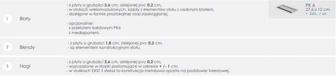 - w stołach wielomodułowych, każdy z elementów stołu z osobnym blatem,