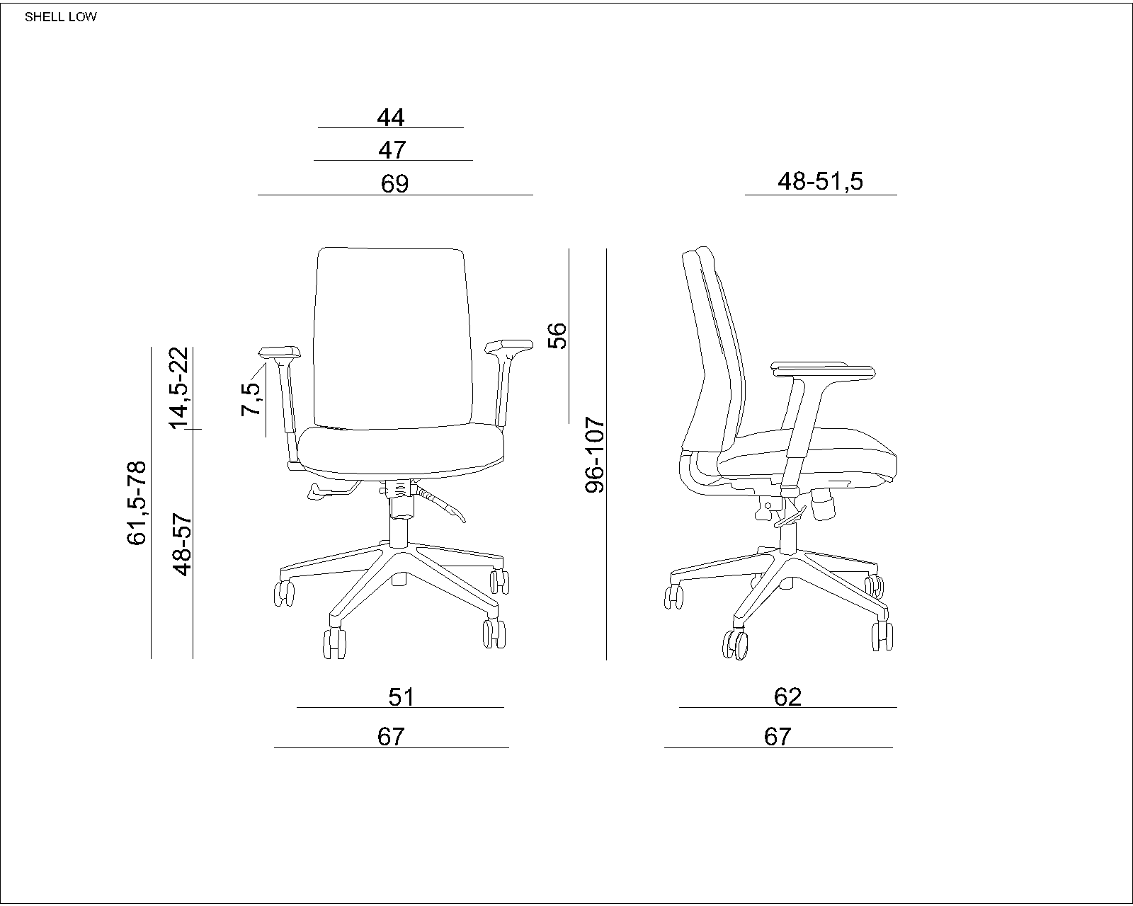 - Regulacja wysokości siedziska – umożliwia szybkie dopasowanie wysokości krzesła biurowego Shell do wzrostu użytkownika oraz wysokości biurka, co zapewnia wygodną i zdrową pozycję.