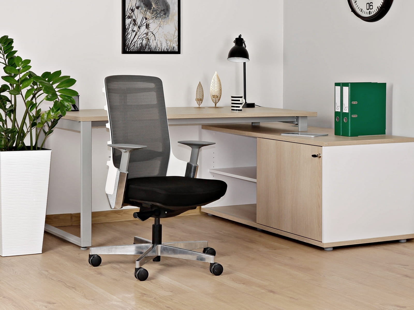 - Krzesło biurowe z oparciem siatkowym i zagłowkiem ERGONIC