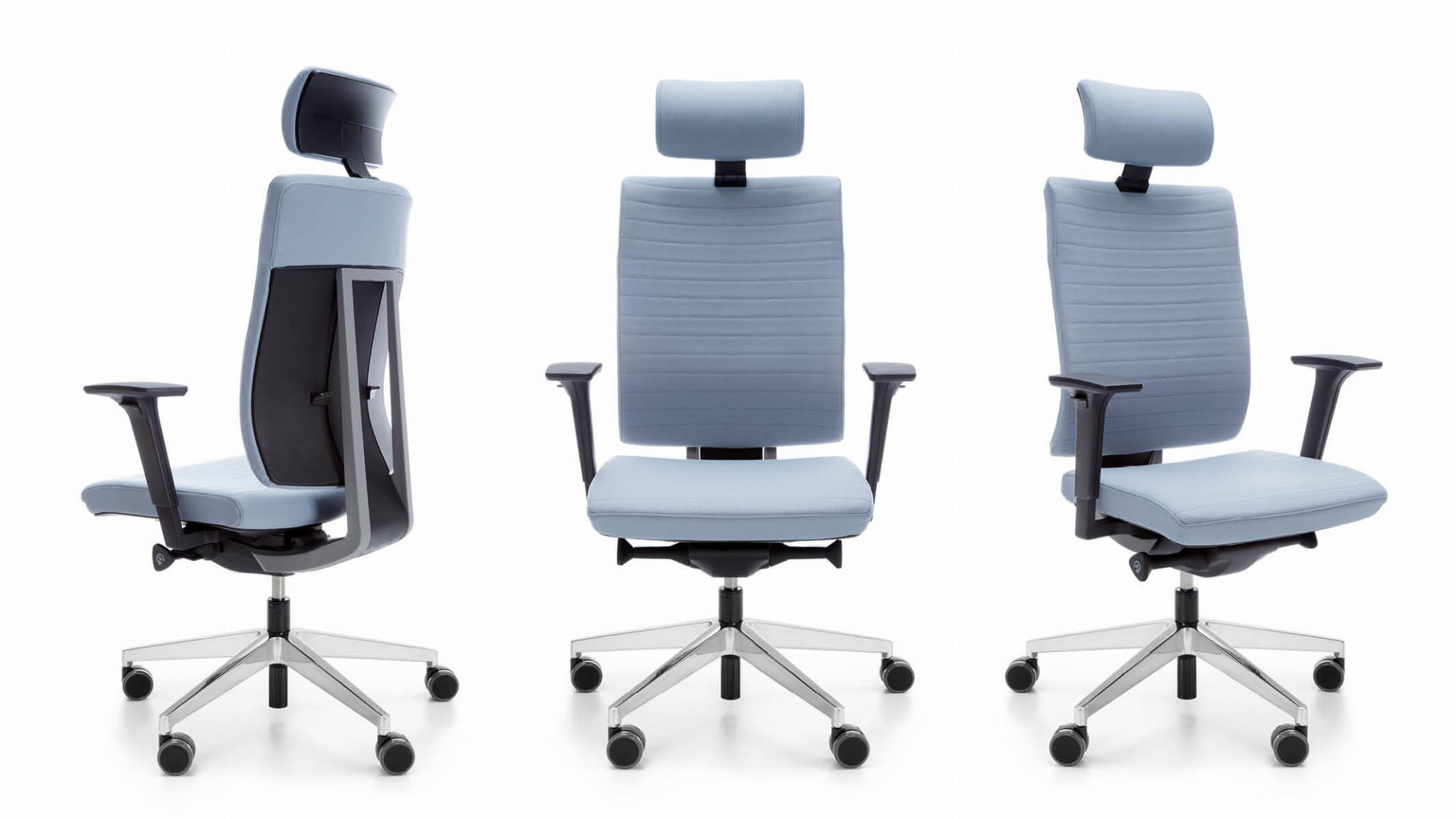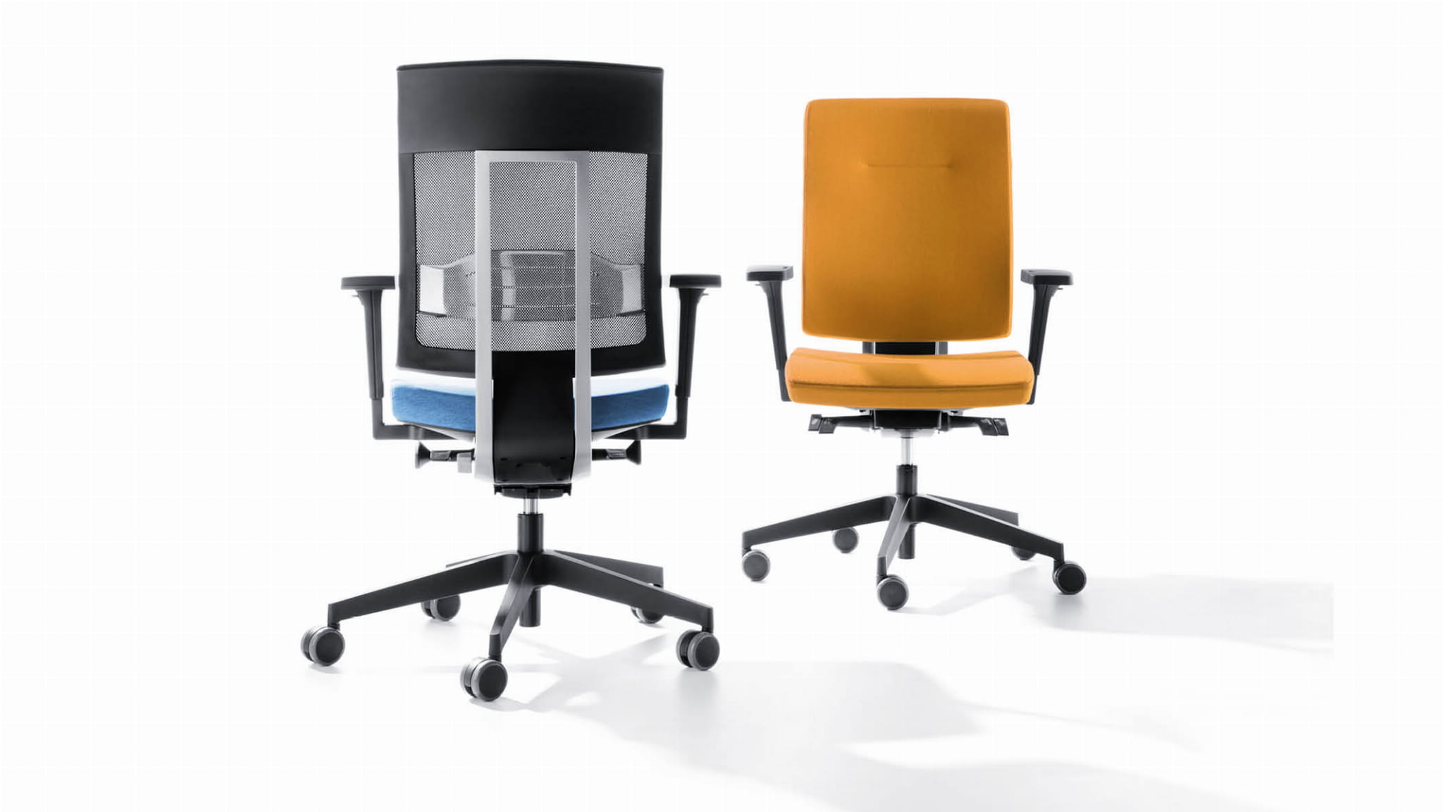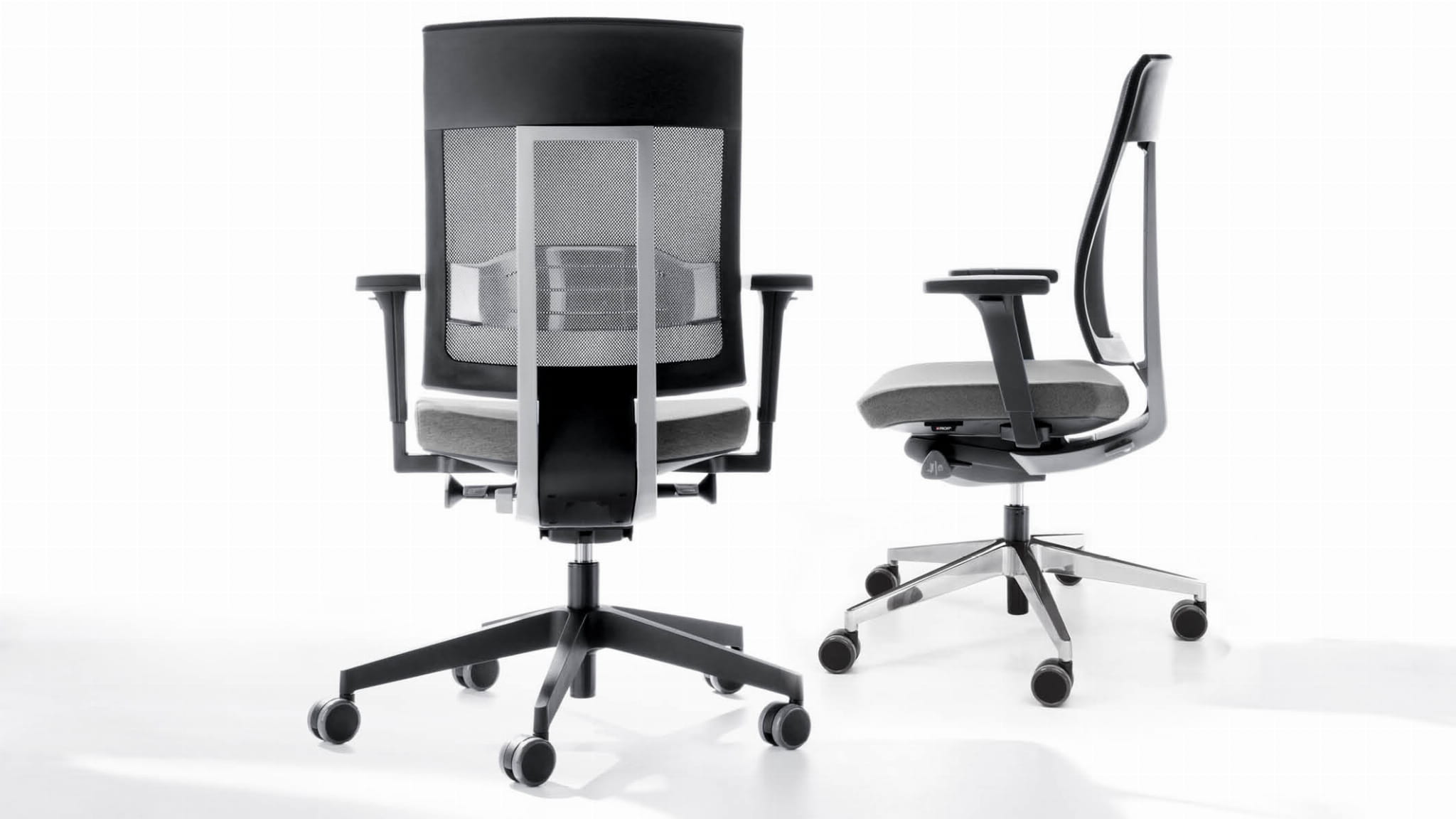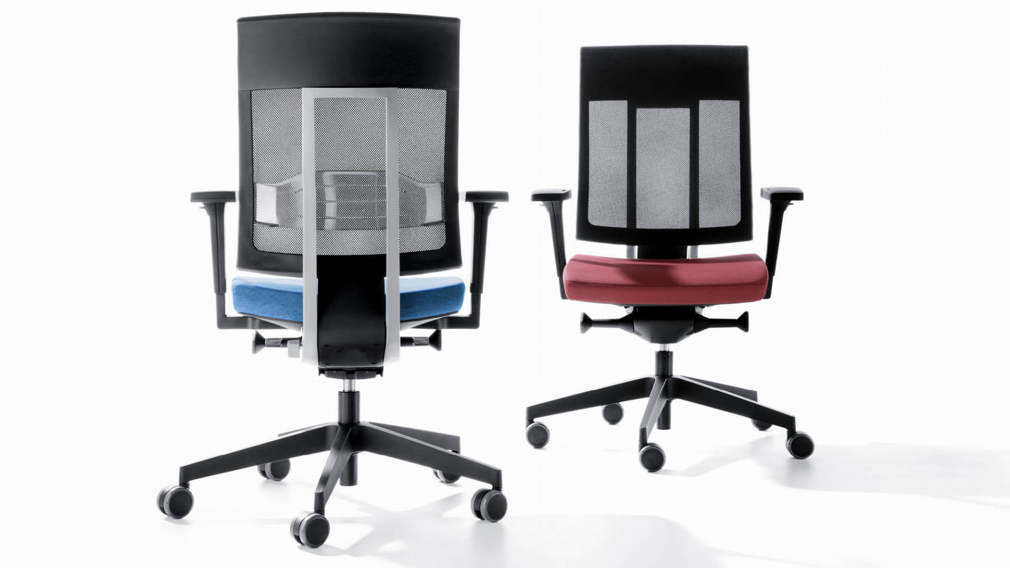 Xenon występuję w 2 wersjach stylistyczno-materiałowych – jako w pełni tapicerowane krzesło lub tapicerowane z oparciem siatkowym. Siatka oparcia również jest wariantywna.